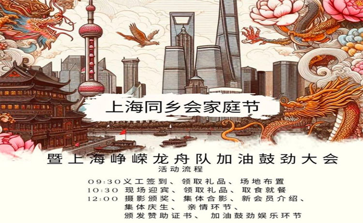 蒙市上海同乡会家庭节暨上海峥嵘龙舟队加油大会于5.26.在唐人街畔溪酒家成功举办,有130多位上海同乡会会员、峥嵘龙舟队队员、赞助者、合作媒体及摄影比赛获奖者参加...