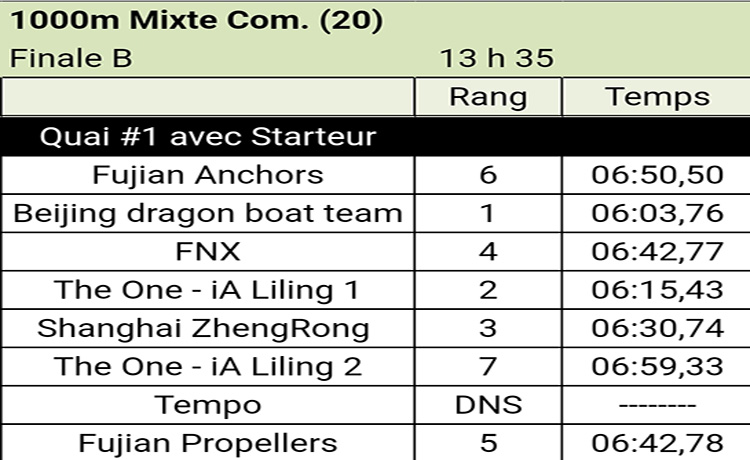 参加 H2o Open 社区500米混合决赛的6支华人龙舟队的排名如下: