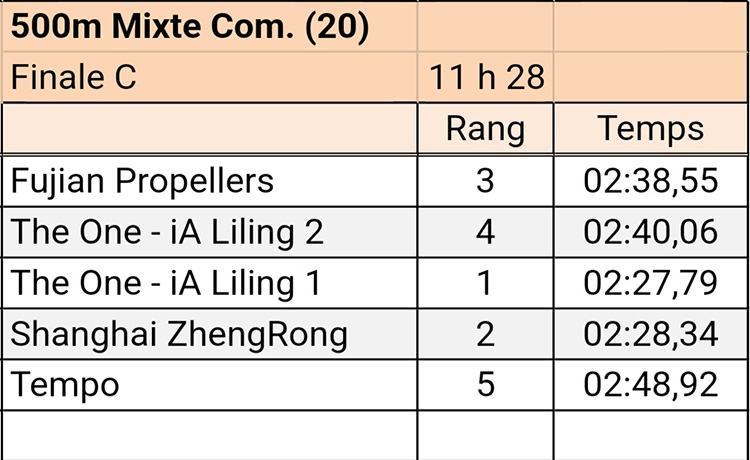 上海峥嵘龙舟队夺得500米混合决赛C组亚军!